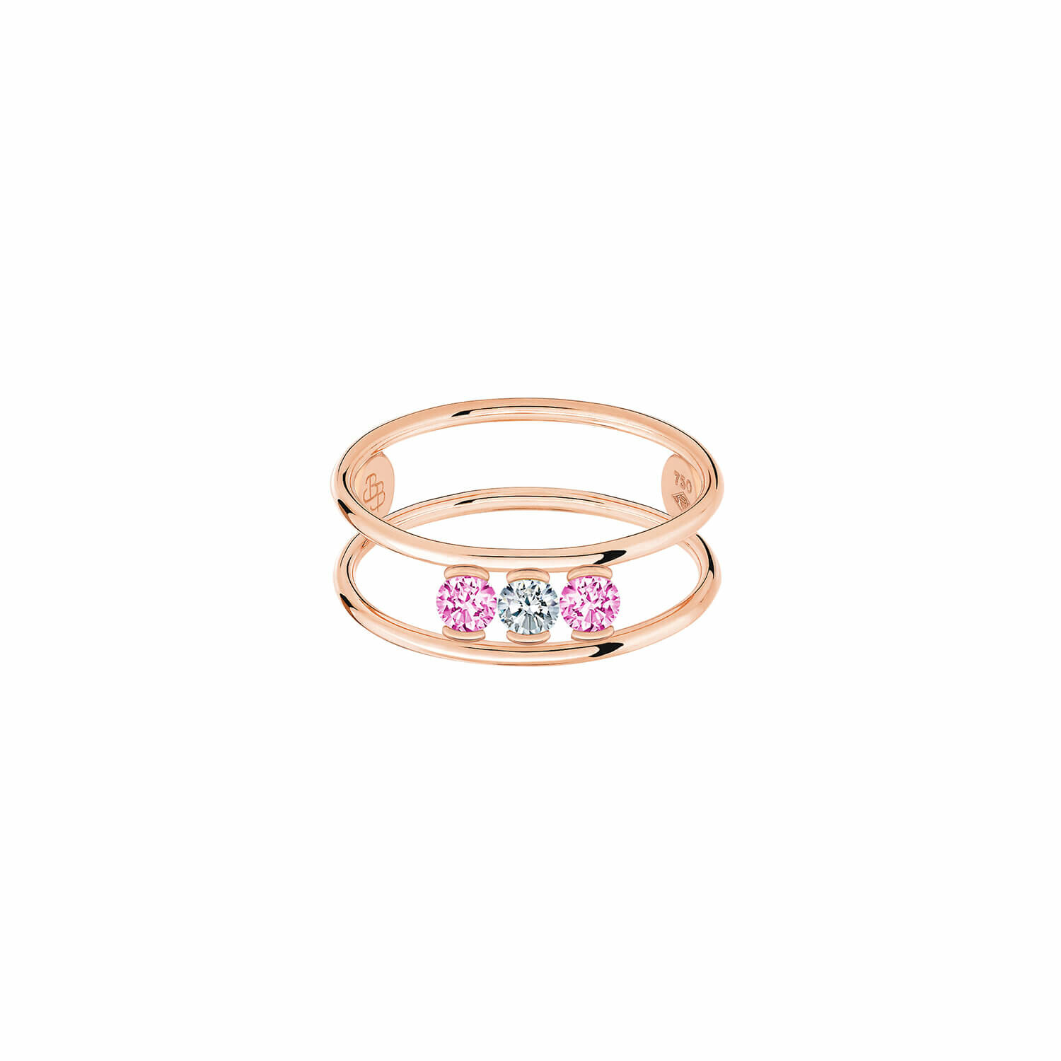 HULA HOOP Bague La Brune & La Blonde HULA HOOP en or rose Trilogie Diamant et Saphirs Roses